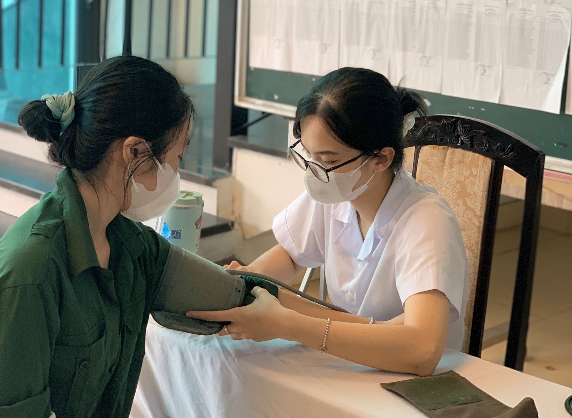 Điều dưỡng kiểm tra đo huyết áp cho học sinh