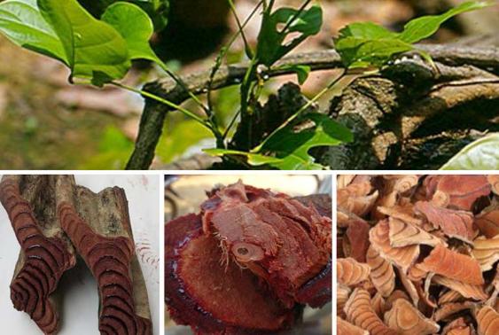 + Kê huyết đằng: Vị đắng, ngọt, tính ôn; bổ huyết, hoạt huyết, cường gân cốt, thông lạc; có thể chữa kinh nguyệt không đều, đau mỏi lưng,