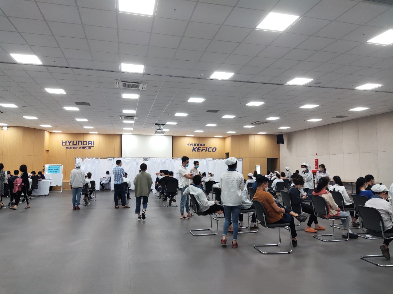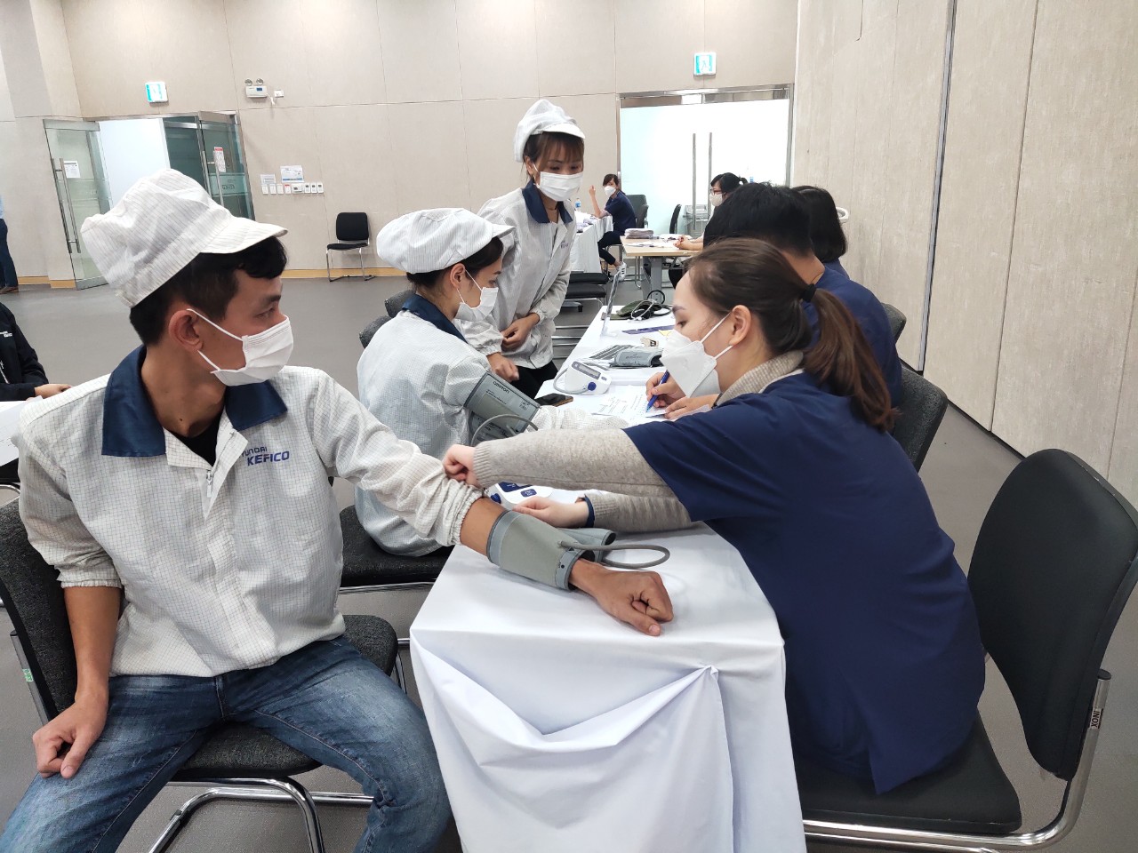 Từ sáng sớm, đông đảo CBNV của Công ty TNHH Huyndai Kefico Việt Nam đã có mặt tại Hội trường công ty để khám sức khỏe.